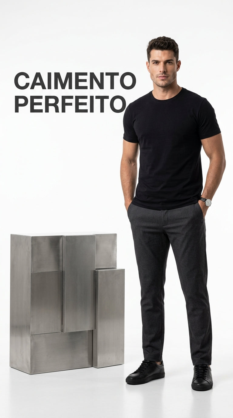 Forjada no design industrial e na obsessão absoluta pelo caimento perfeito, a marca entrega peças sem excessos, onde a elegância é silenciosa. Utilizamos tecidos de alta performance projetados para estruturar os ombros, alinhar a silhueta (do P ao 2XL) e resistir à rotina pesada sem amassar ou desbotar.