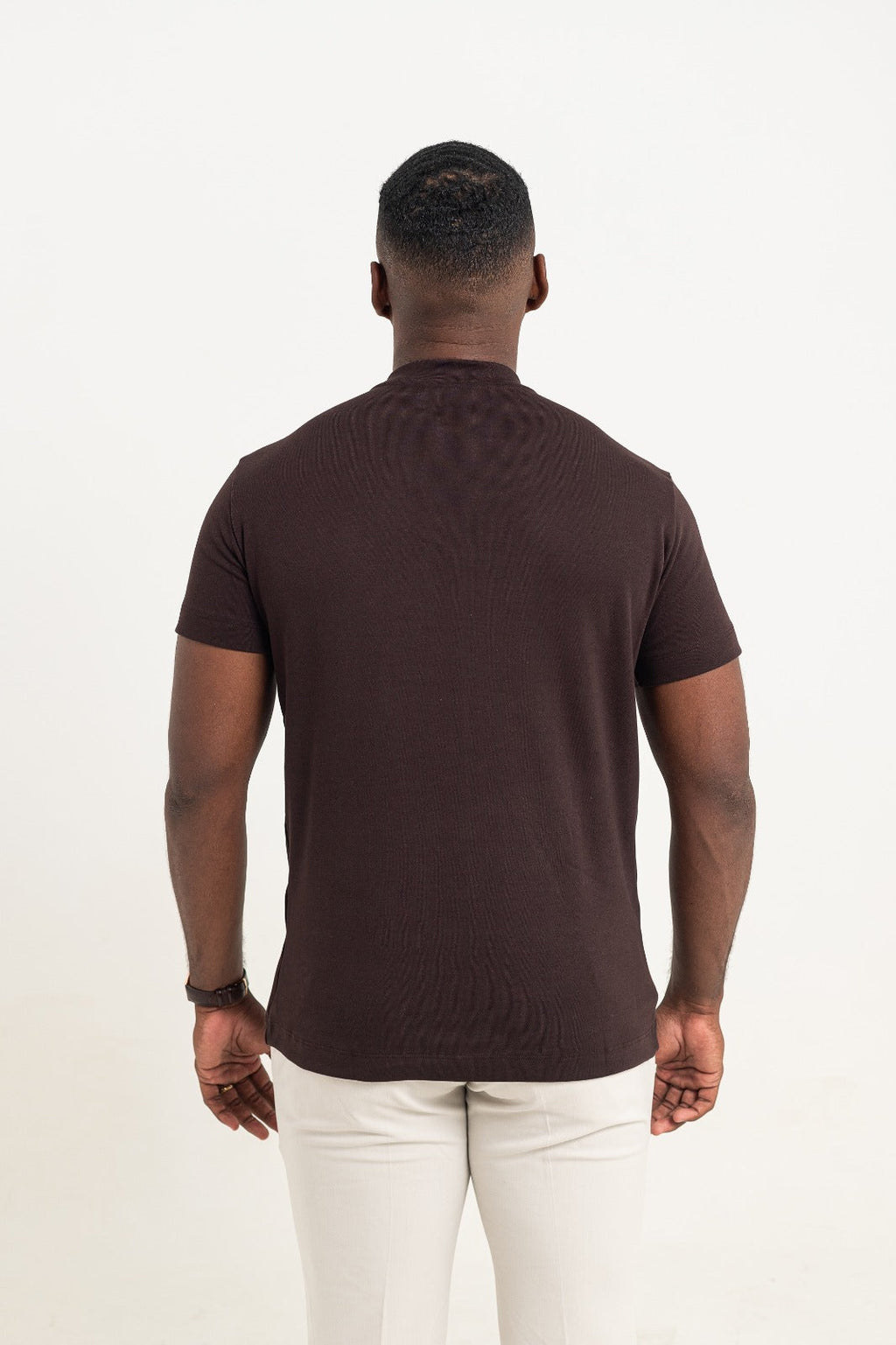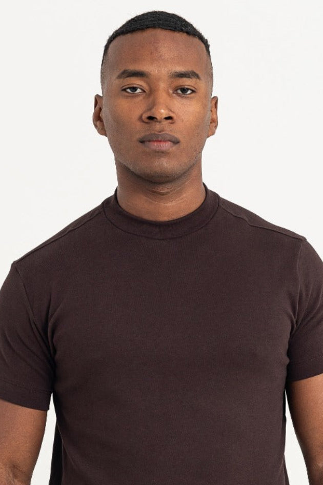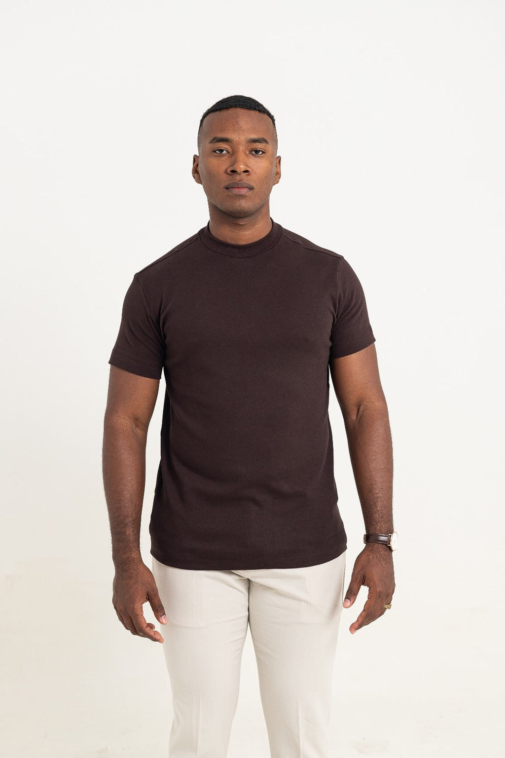 A gola média cria um visual alinhado e contemporâneo, transformando o básico em uma peça marcante.