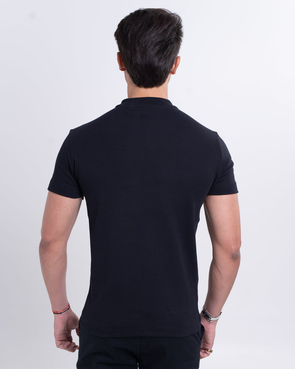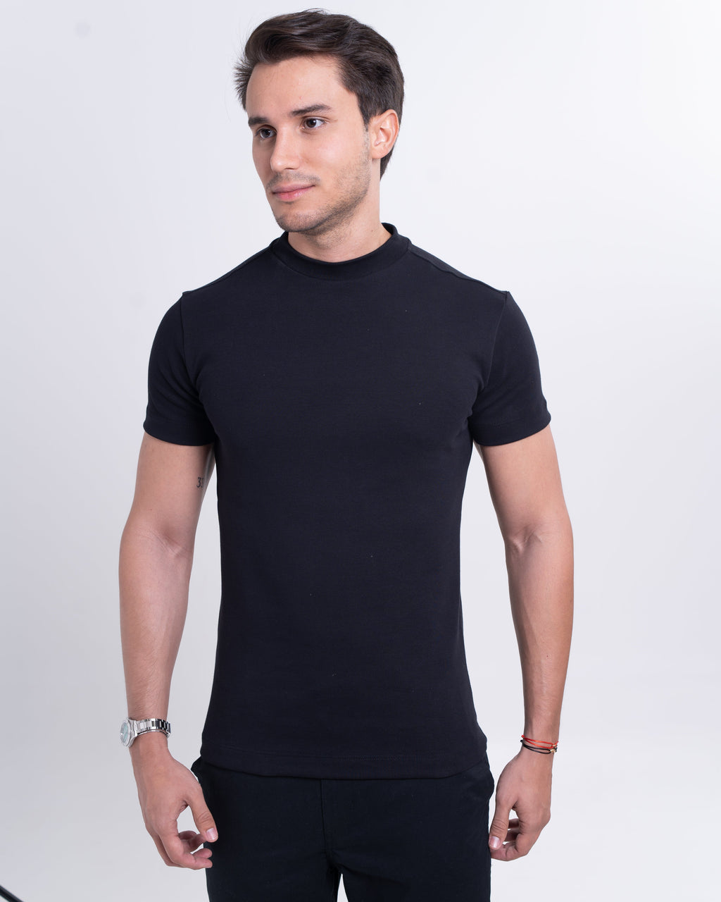 A gola média cria um visual alinhado e contemporâneo, transformando o básico em uma peça marcante.
